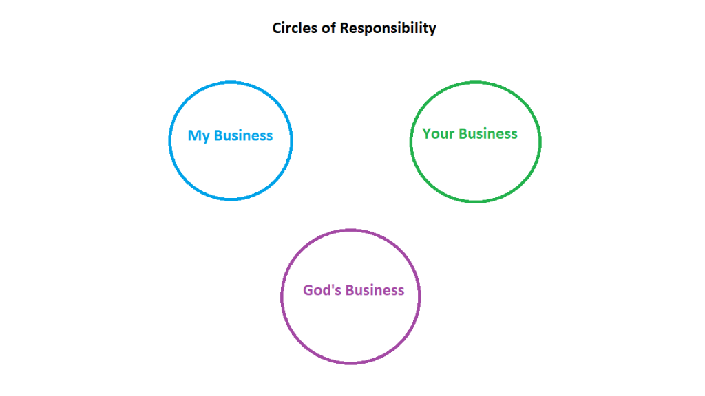 Your Business is a circle completely outside of my responsibility, and therefore of my control. I can influence it, I can try to manipulate it, I can also try to control it. But the truth is that the most effective way to be free is to let go completely of trying to influence it. If I focus 100% on my circle, and let go of the outcome, that will give me inner peace, and paradoxically will tend to produce better outcomes for both of us.