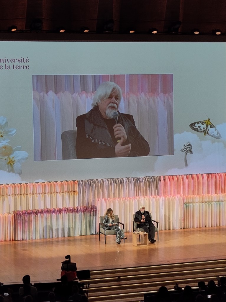 During his interview/talk, he owned his story of “being a pirate” and navigating a fine line to combine activism and pragmatism. He shared his tactics to expose the systemic violence exerted by commercial activities against the biosphere, leveraging on the mass media’s appetite for scandals and violence, and rallying celebrities to the cause to raise the awareness of the mainstream public.